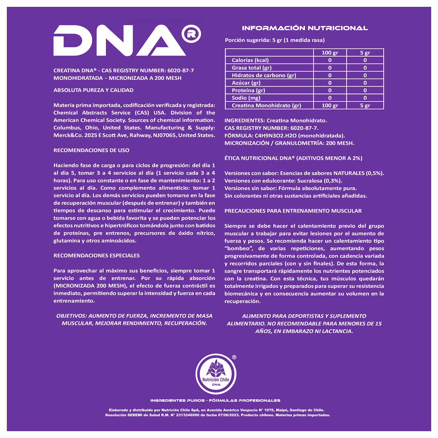Creatina DNA® – Pura Y Sabores – Recarga DoyPack – 1 Kilo